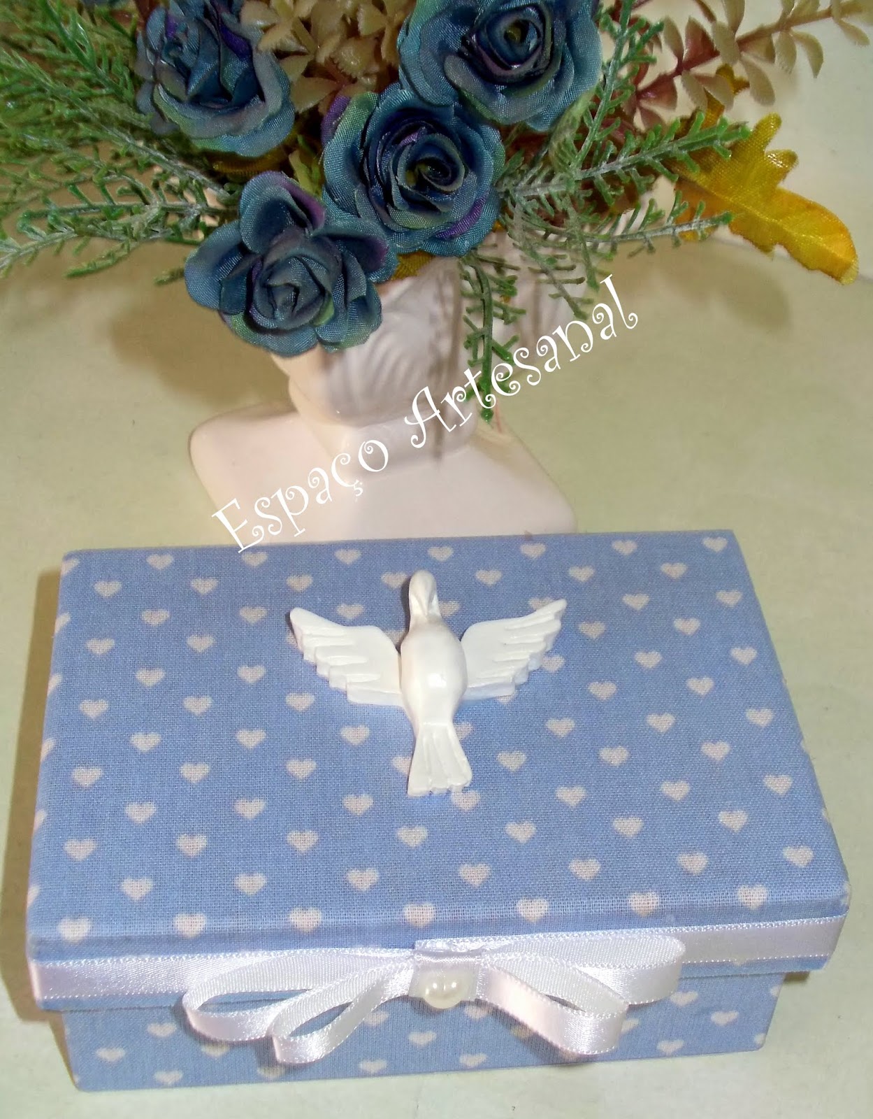 Caixa revestida em tecido,aplique resina e laço chanel.